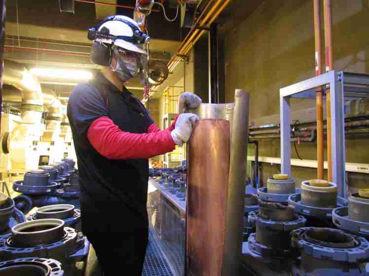 赏金国际将废弃物转化成有效的工业或民生原物料,,图为废铜液淬炼后再制成纯度极高的铜管