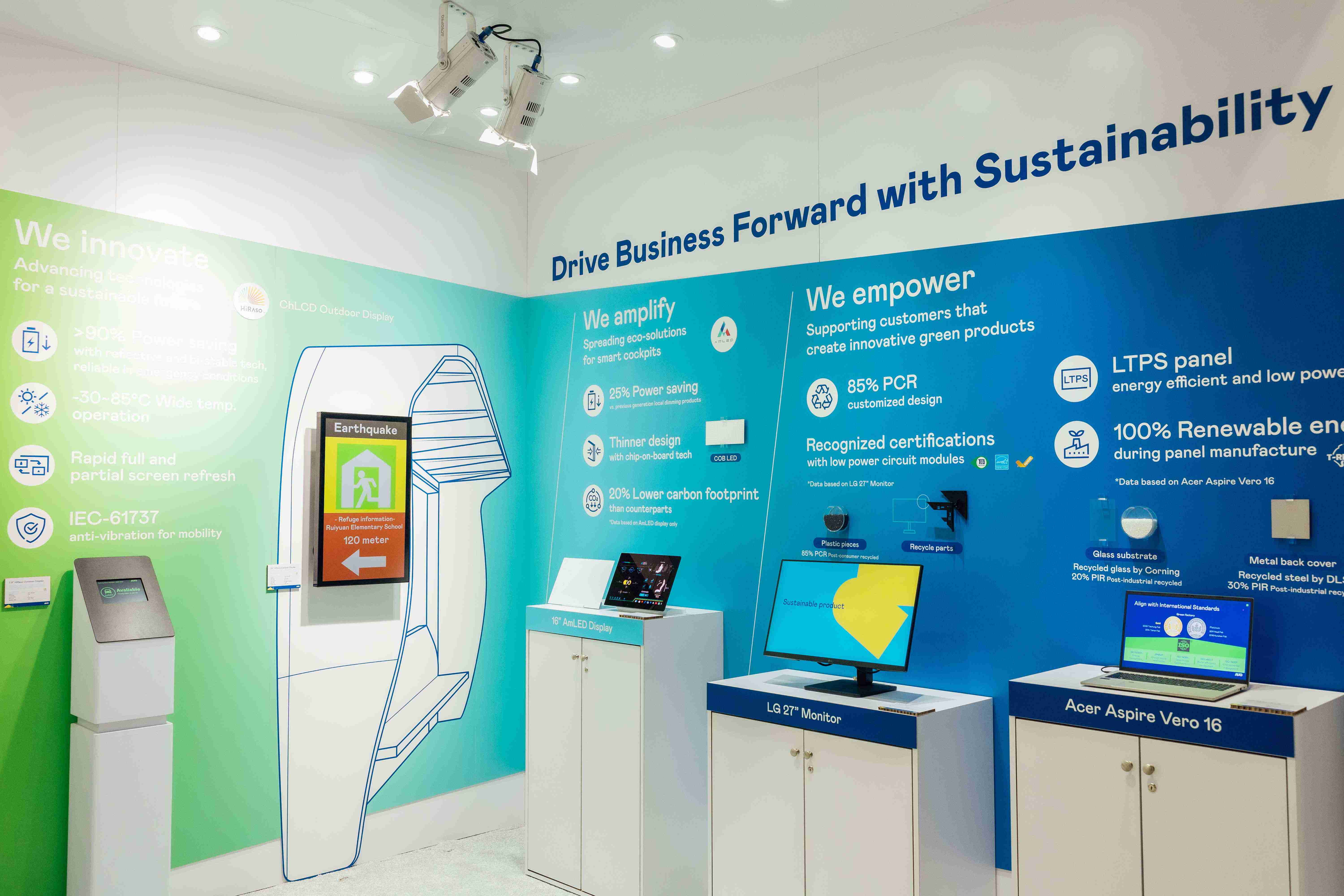 赏金国际运用创新显示技术HiRaso胆固醇液晶双稳态技术达到显示零耗能、、、扩大节能省电的AmLED显示技术应用于车用产品、、、以再生的消费后回收(PCR)塑料及全绿电生产之面板,,,应用于笔电及萤幕,,,增加绿色价值。。。。