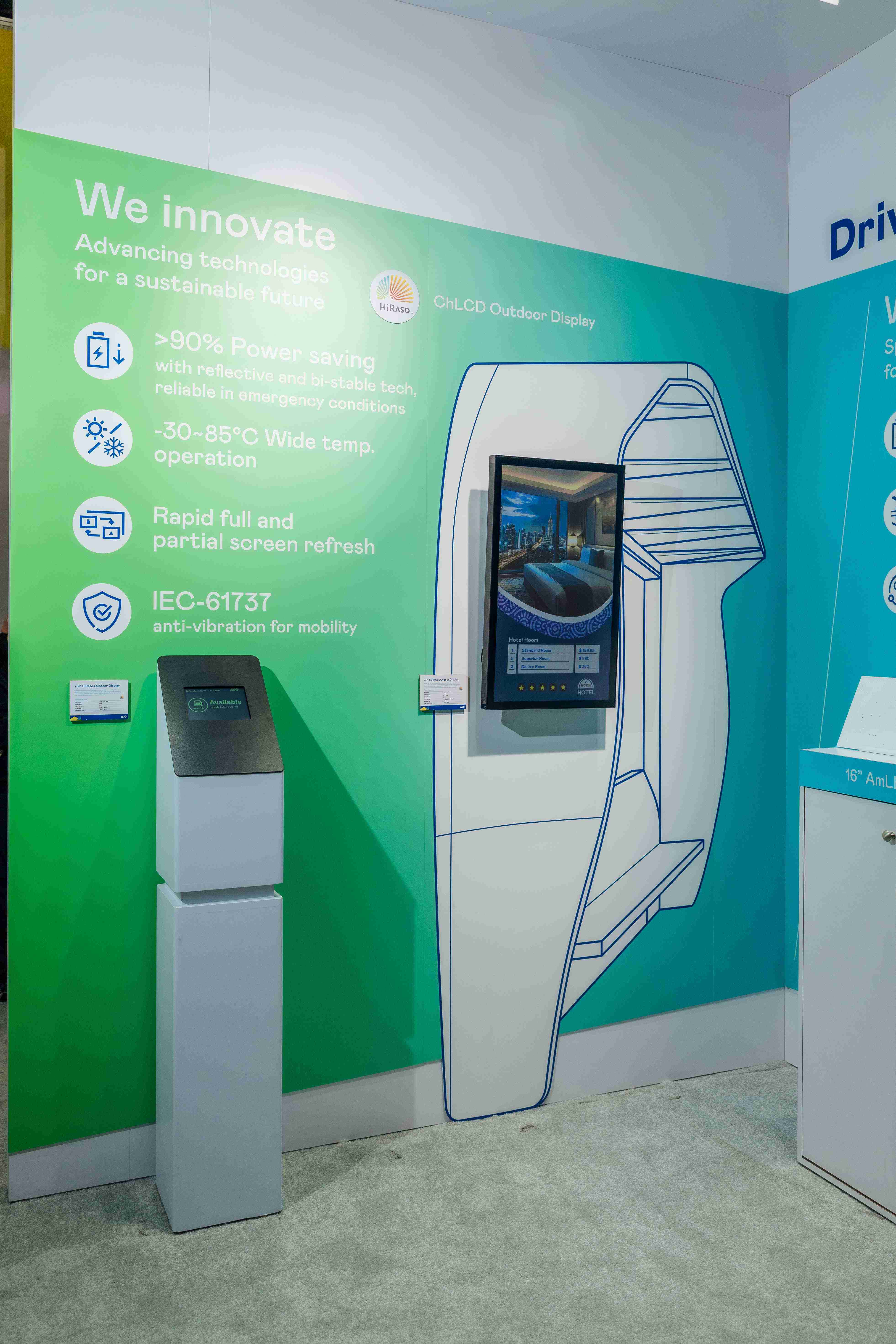 HiRaso胆固醇液晶显示器运用反射环境光线的方式,,,,呈现影像显示时零耗能的环保省电诉求,,,,光线愈强愈能呈现绝佳的色彩饱和度及显示效果,,,,同时在摄氏-30度至85度间宽温的使用优势,,为户外电子看板的新首选。。。