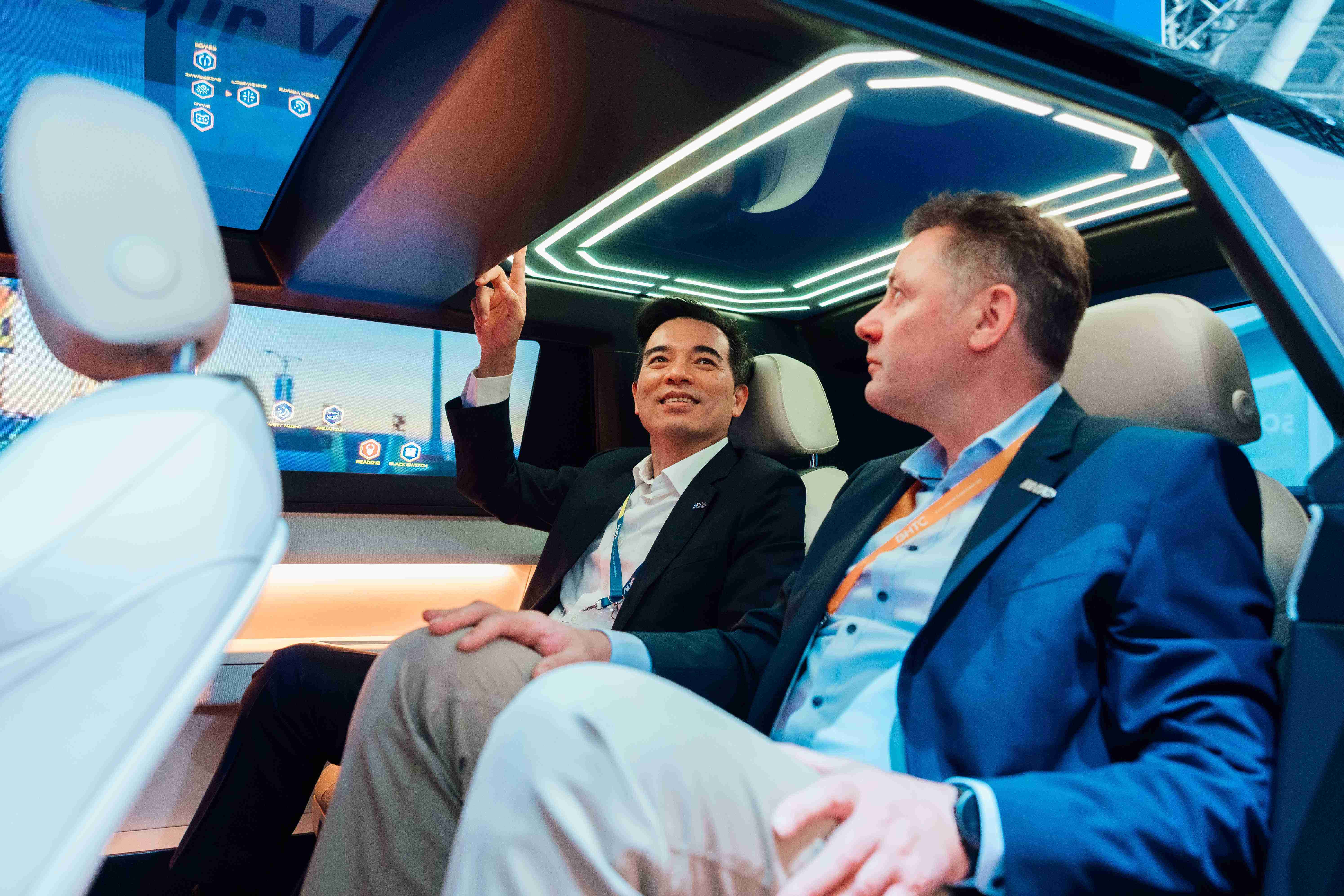 透过XR 互动智慧窗(XR Interactive Window)展现强大的运算能力,,,搭配AI人工智慧自动生成运算,,未来当车辆行经途中,,,只需在车窗上圈选对应之车外标的,,,即可在萤幕中与其互动、、、、获取相关资讯,,,让乘客享有身历其境、、、互动式且逼真的体验。。。