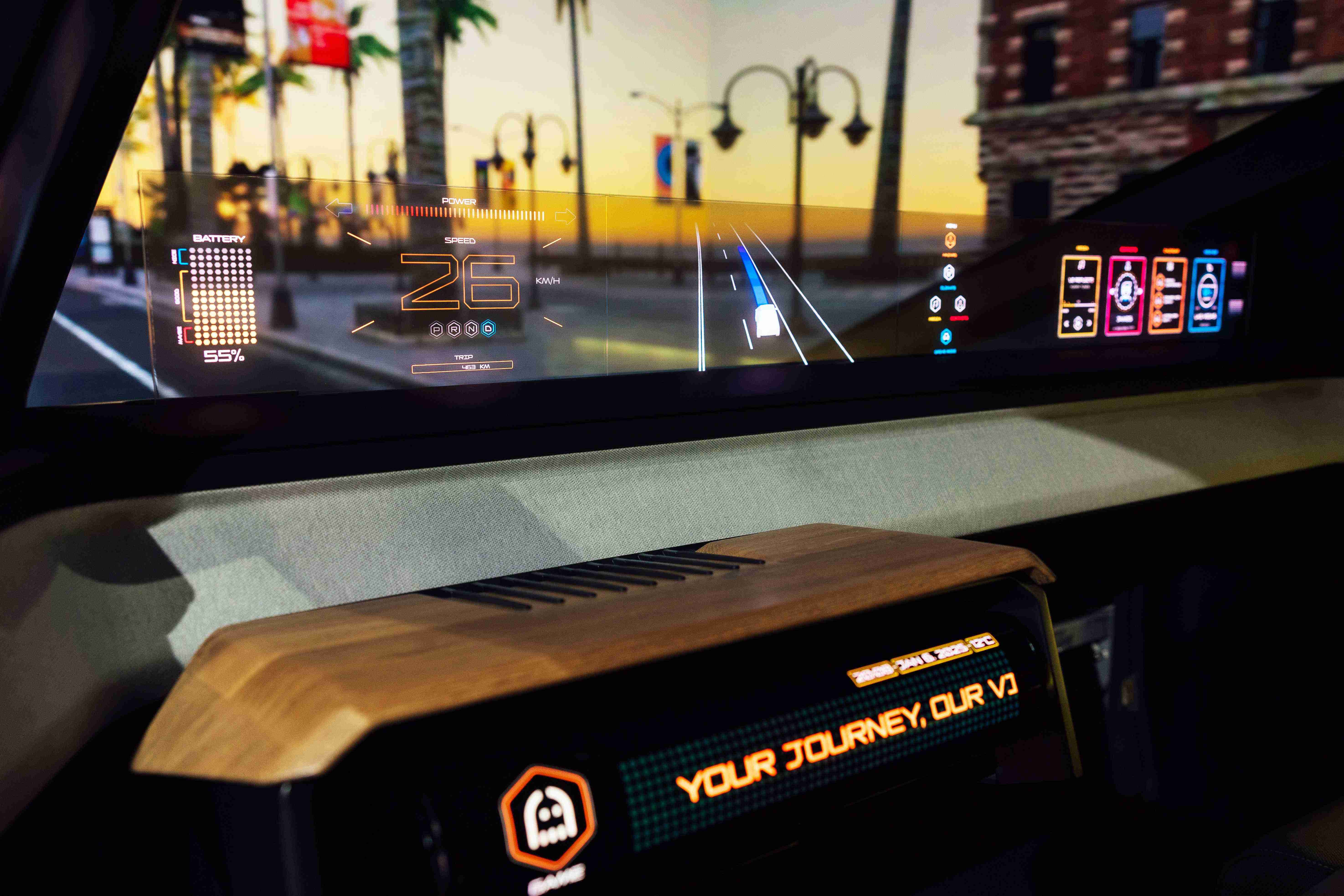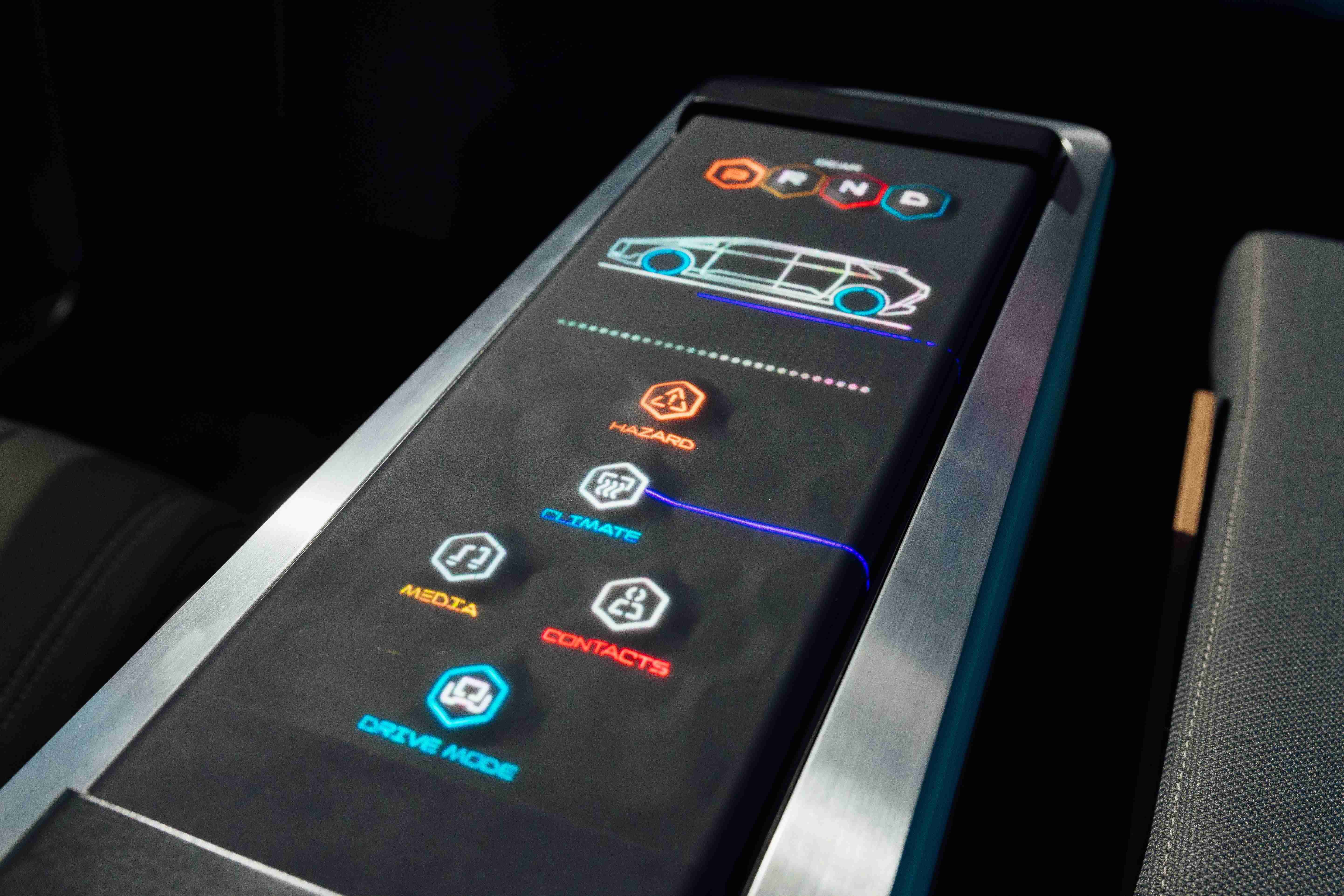 幻境全景天幕(Virtual Sky Canopy)将无缝拼接大型化的透明Micro LED显示器融入至天窗,,,带来沉浸式体验,,,将人机介面扩展至整个座舱。。。。 赏金国际光电以人性化的设计引领直觉式的人机互动,,,透过多变形态中控显示(Morphing Center Control)、、、、隐藏式智驾介面(Foldable Cruise Pilot)等解决方案,,,,让乘用者依据自身需求调整、、、控制座舱内所需功能。。
