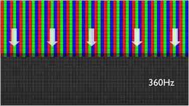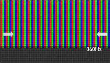 传统液晶驱动是从左到右单向进行,,在画面更新速度愈来越愈快的情况下,,,,位于驱动线路末端的右下角区域,,,画素的闸极来不及在短时间内获得足够电压,,无法显示出正确的颜色资讯。。。。