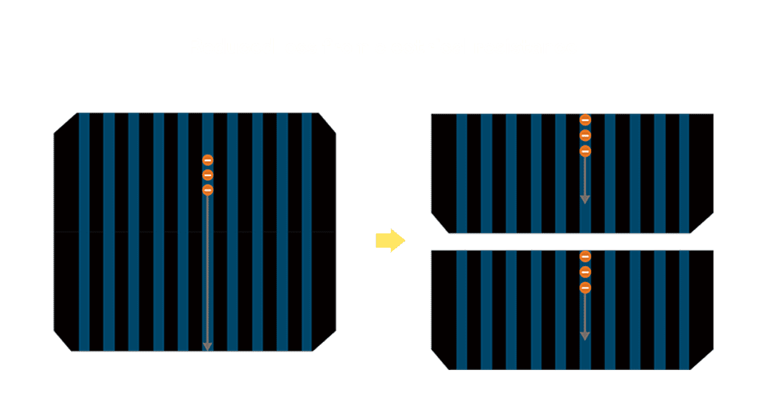 • 多条电极栅结构,,,可有效降低外力对于电池的影响,,,,限制电池隐裂 (Micro-cracks) 范围,,防止电流传输路径 (Current distribution) 之损坏进一步扩大。。。